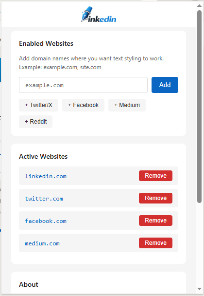 Inkedin is a lightweight Chrome extension that lets you emphasize text in social media posts using Unicode characters. No external tools, no copy-paste, no breaking your writing flow.