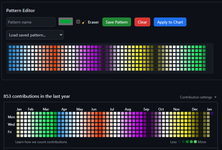 Transform your GitHub contribution chart into an LED display with text animations, 30+ color schemes, and a disco ball mode!